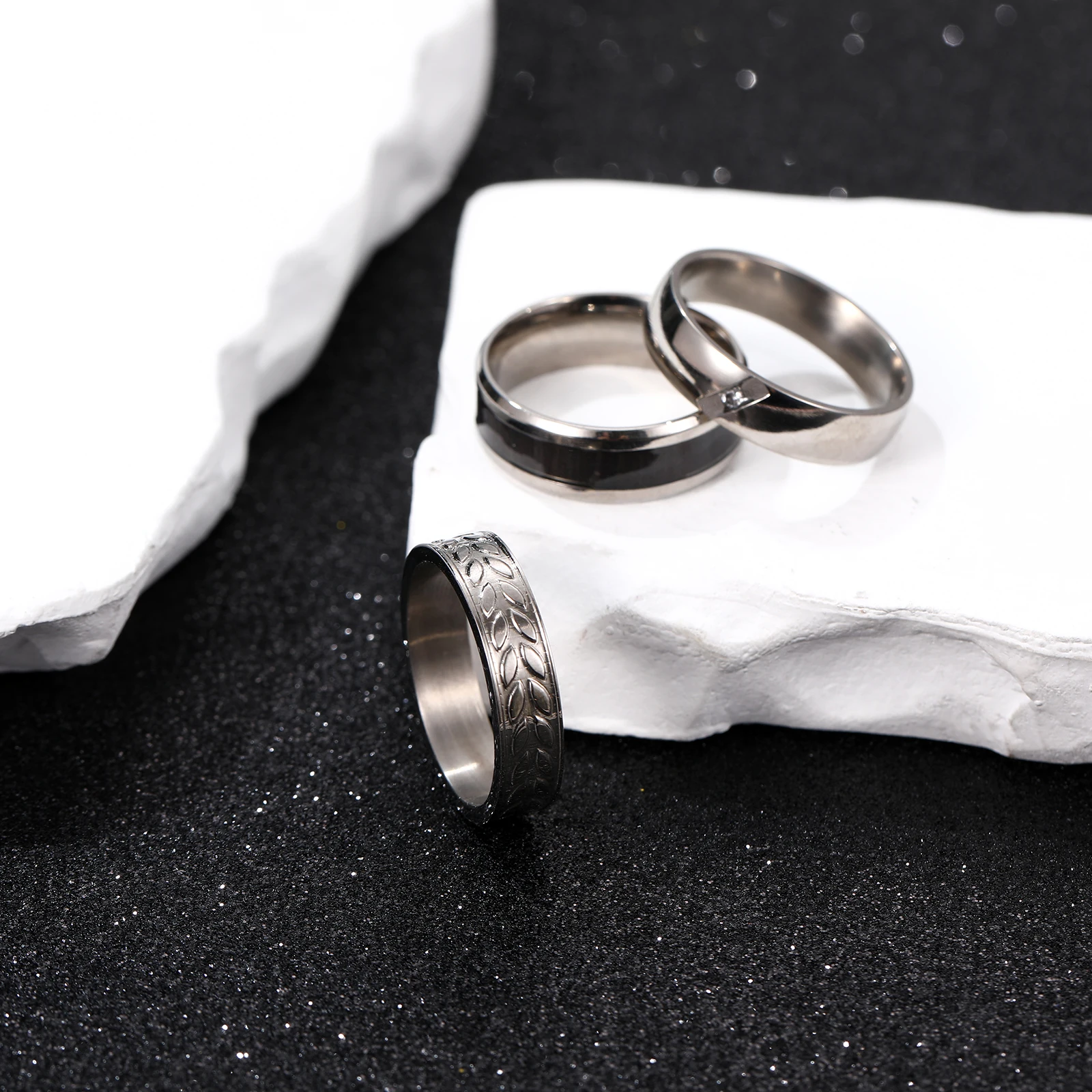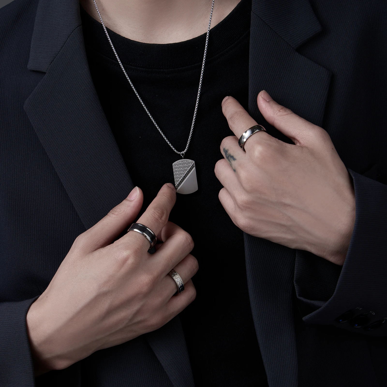 2026 Men's Rings and Necklace Various Shape Leaf Titanium Rings CZ Stones Setting Titanium Jewelry